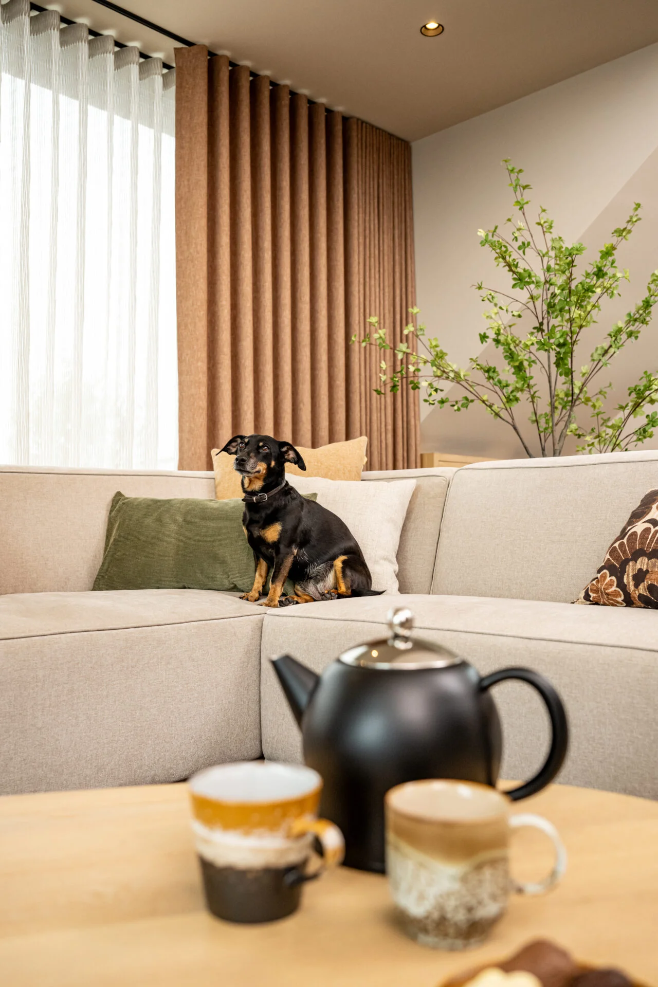 Onze eerste draaidag vond plaats in een prachtige woning in Grou. Denk aan sfeervolle interieurs, zonlicht dat zachtjes door de ramen valt en natuurlijk de schitterende gordijnen van A House of Happiness die het plaatje compleet maakten. We schoten van stijlvolle interieurshots tot gedetailleerde close-ups die laten zien hoe bijzonder deze stoffen écht zijn. Want laten we eerlijk zijn: een huis is pas een thuis met gordijnen die sfeer en warmte brengen!