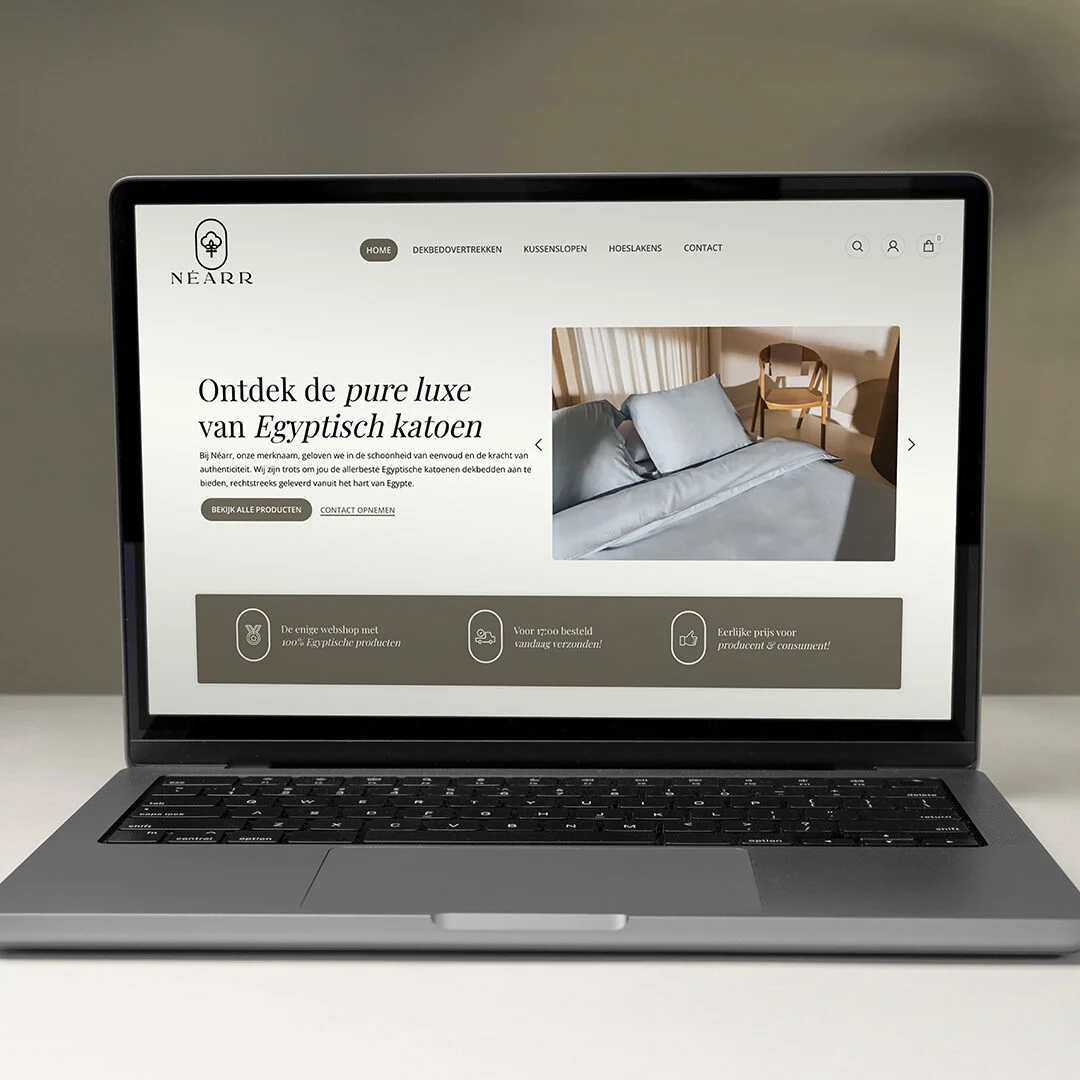 Voor een merk als NÉARR is een sterke visuele uitstraling essentieel. Daarom hebben wij de fotografie verzorgd voor de website en marketingmaterialen. Denk aan sfeervolle productfoto’s die de zachtheid en luxe van het Egyptische katoen tot leven brengen. Maar ook beelden die het ambacht en de herkomst van de producten benadrukken. Alles om het verhaal van NÉARR op een authentieke en overtuigende manier te vertellen.